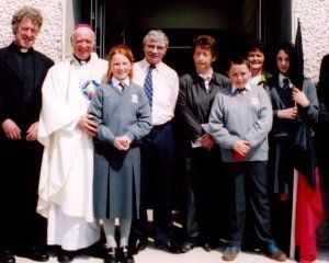 Following this, all went inside for a celebration of mass co-concelebrated by His Grace ,Archbishop Clifford, Fr. Richard Browne (P.P.), Fr. Liam Ryan, Fr. Seamus Ryan and Fr. Corbett. Many people spoke representing Parents Councils, Boards of Managements, and past pupils recording their memories of the school. Last to speak was Enda O' Mahoney(principal) who detailed the changes to Tineteriffe N.S. and thanked all who contributed to the project.